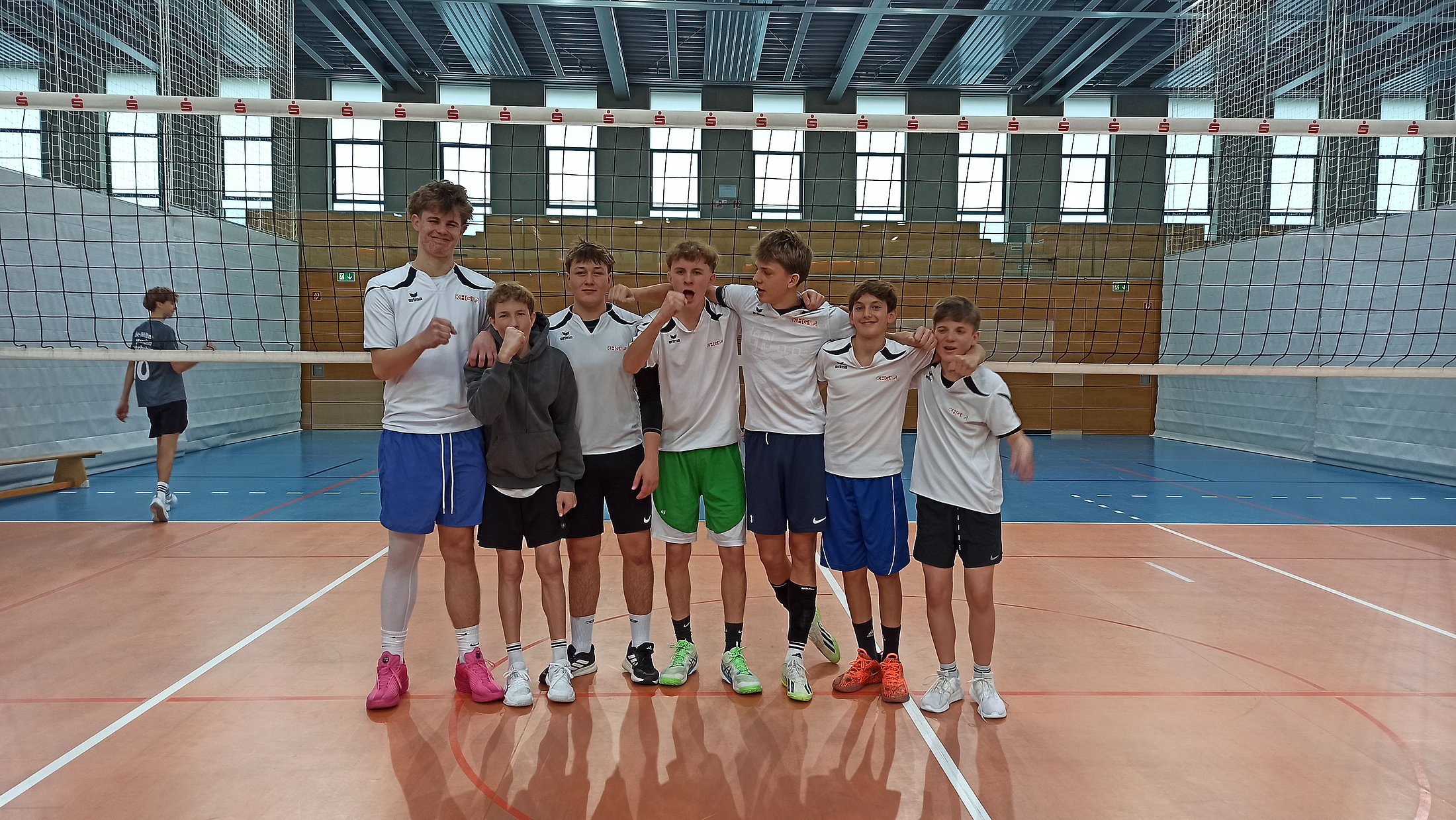 Die KHG-Schulmannschaft Jungen II (Betreuung Frau Geraghty) nahm am 15.12.2025 am Schulsport-Wettbewerb Kreisfinale Volleyball in Unterhaching teil. Im ersten Spiel gegen die Realschule Unterschleißheim zeigte das Team eine sehr gute Leistung. Nach einem spannenden Spielverlauf und einem packenden Tie-Break konnte unser Team den Sieg erringen. Im anschließenden Duell gegen die technisch und taktisch überlegenen Spieler aus Unterhaching präsentierten sich unsere Schüler dennoch gut und zeigten einige starke Einzelaktionen, auch wenn es letztendlich nicht für einen Sieg reichte. Im letzten Spiel des Tages gegen die Mannschaft aus Schäftlarn startete unser Team etwas chaotisch, fand jedoch schnell zurück zu seiner Form und entschied die Partie mit 2:0 für sich. Mit diesem Ergebnis sicherte sich unser Team den sensationellen 2. Platz, hinter Unterhaching! Gratulation!