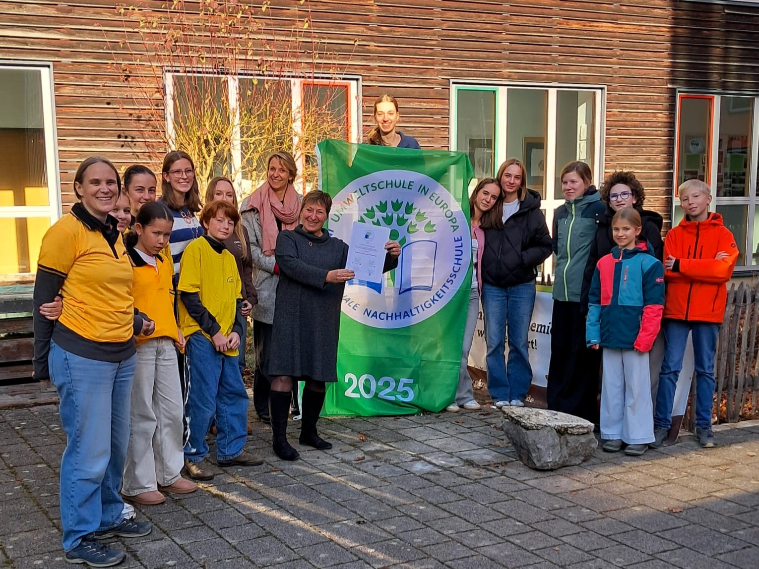 Seit 2019 darf das Kurt-Huber-Gymnasium den Titel „Umweltschule in Europa/Internationale Nachhaltigkeitsschule" führen. Um diese Auszeichnung müssen sich Schulen jedes Jahr neu bewerben und unter Beweis stellen, dass sie die Anforderungen erfüllen und sich darüber hinaus auch weiterentwickelt haben. Im Schuljahr 2024/2025 gelang uns erneut die Auszeichnung für die höchste Qualitätsstufe mit allen drei möglichen Sternen - und so bleiben wir auch im Schuljahr 2025/26 Umwelt- und Nachhaltigkeitsschule. Das KHG hat damit Vorbildfunktion für andere Schulen. Gedankt sei hier vor allem der Gemüseacker AG (Leitung Frau Ondraczek), der Tansania AG (Leitung Frau Rückert) und der Fair-Trade-Gruppe (Leitung Frau Bauersfeld) für ihr nachhaltiges Engagement!